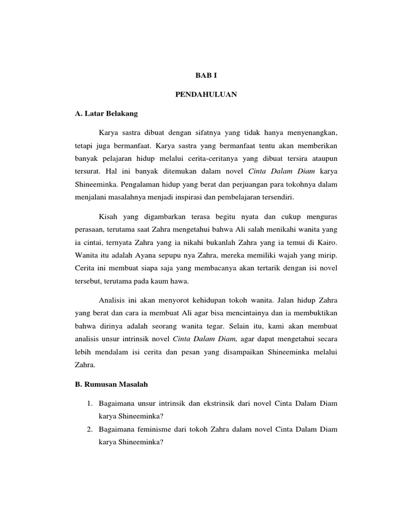 Kutipan Wattpad Cinta dalam diambagian 1 Kutipan di atas membuktikan bahwa ibunya sangat tegas dengan Fatimah yang menyuruhnya memakai pakaian yang sesuai dengan syariat islam. Perbedaan unsur intrinsik yang paling menonjol antara novel Nyanyian Cinta dengan hikayat Indra Bangsawan adalah gaya bahasanya. Pendekatan pragmatik memiliki manfaat untuk memperrnudah memahami cerpen Sepotong Cinta dalam Diam dari segi.